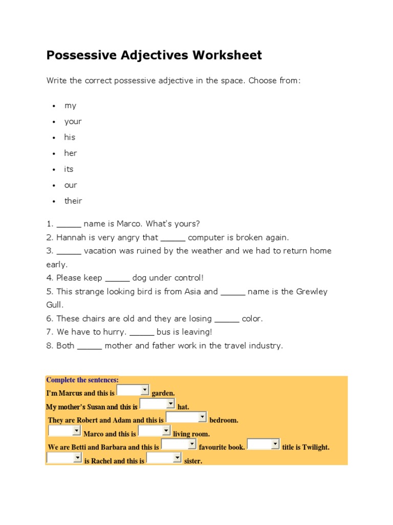 If you need more grammar related worksheets, see our free printable activity sheets below. A collection of downloadable worksheets, exercises and activities to teach possessive adjectives, shared by english language teachers. Welcome to esl printables, the website where english language teachers exchange resources:
