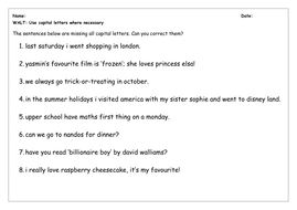 Pics. These worksheets have a study guide of text which is tied to learning the key skills associated with understanding how capitalization works within english language. Our printed capitalized worksheets will prove quite helpful to your students to understand which word should be capitalized and which should not.